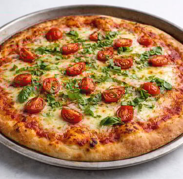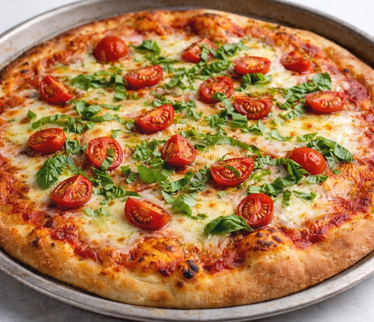 Coberturas: Além de tomate e manjericão, você pode adicionar outros ingredientes como azeitonas, cebola roxa, presunto ou cogumelos.